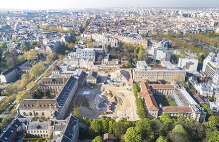 Sur le site de l’ancien hôpital, 59 000 m² de constructions neuves ou réhabilitées vont être chauffés grâce à une installation inédite : une boucle d’eau chaude qui valorise l’énergie calorifique du réseau d’eau non potable de la Ville de Paris.