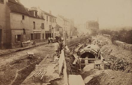 Dans Paris, la Bièvre canalisée se couvre facilement. À l'extérieur, la configuration en rivière naturelle nécessite la réalisation d'ouvrages colossaux, plus complexes à mettre en place. De 1877 à 1881 est créé un égout de grand type et un grand collecteur, supprimant la rivière sur une grande distance. La Bièvre morte est mélangée aux égouts et la Bièvre vive est canalisée dans un tuyau rejoignant le collecteur général. De plus, le percement des rues traversant la Bièvre nécessite également un relèvement de la vallée à certains endroits, engageant à nouveau de grands travaux. Le dernier tronçon ne sera couvert qu'en 1935, situé sous l'actuel parc Kellermann.