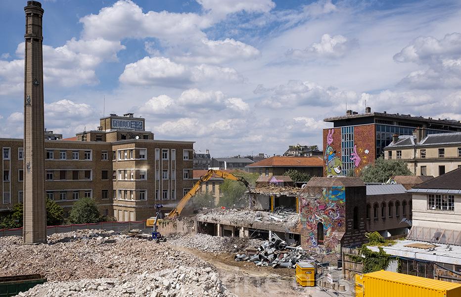 La pierre, la brique et le béton provenant des bâtiments déconstruits sont broyés. Réduits en gravats, ils sont stockés in situ, puis réutilisés comme matériau de remblai dans la construction du futur quartier.