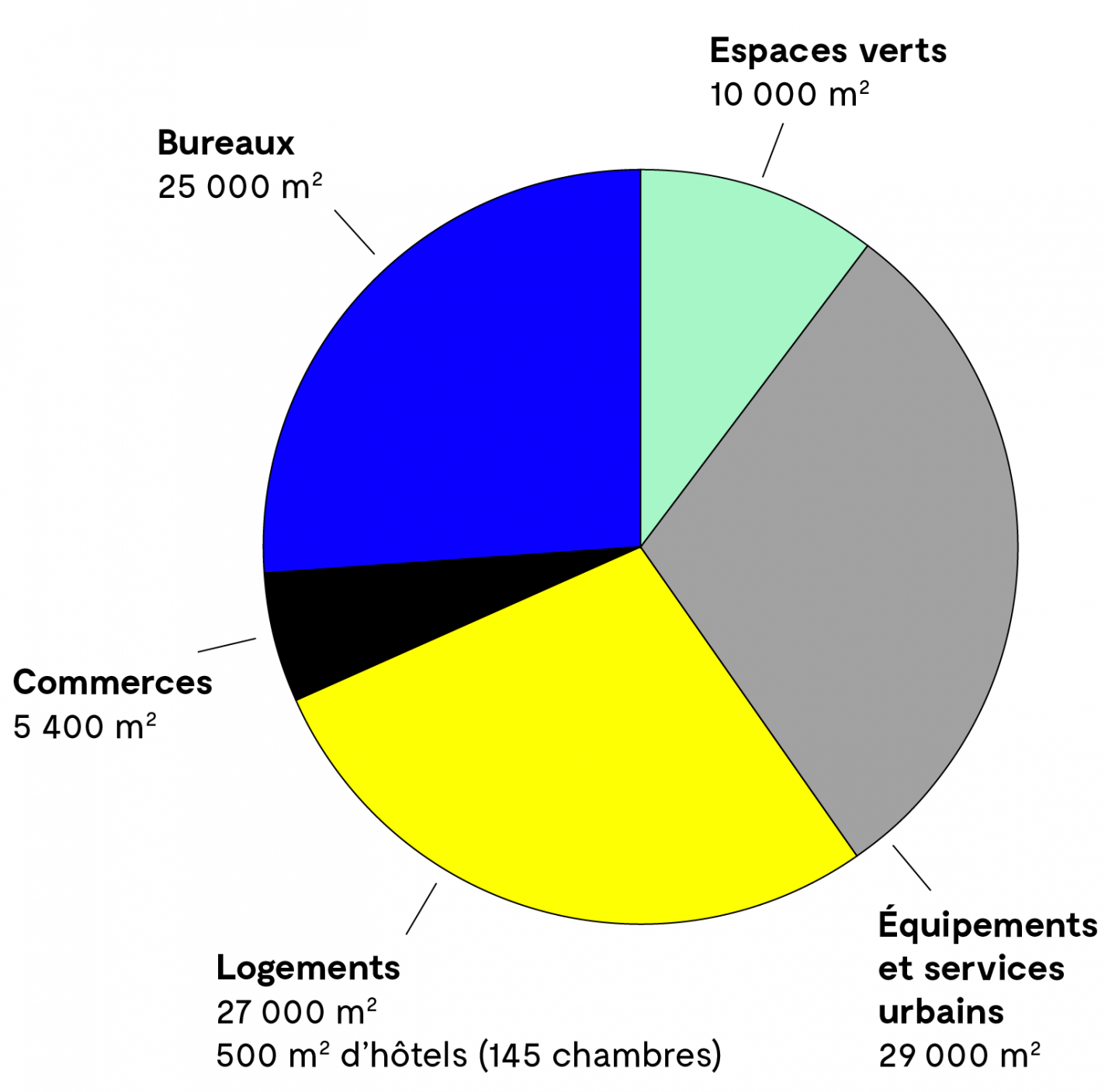 | Équipements et services urbains | 29 000 m² Crèche et équipement polyvalent Garage des TAM Annexe pompier Préfourrière Stade Centre social |