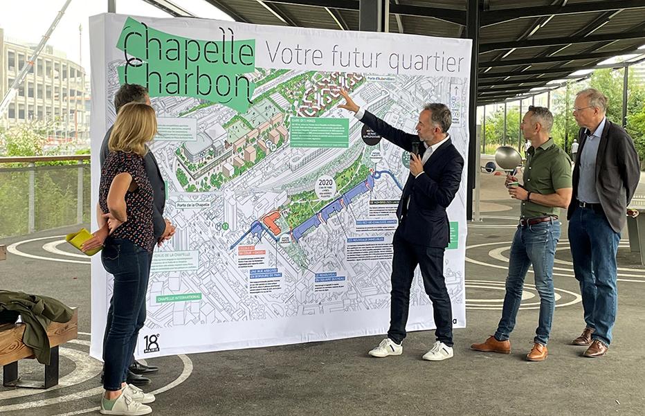 Dans un nord-est parisien en mutation accélérée par l’accueil des Jeux de Paris 2024, le 18e arrondissement est le théâtre de multiples projets. En son cœur, le projet urbain Chapelle Charbon a déjà créé un grand parc. Il sera bientôt complété d’un morceau de ville achevant le quartier Évangile. Ce quartier bas carbone à haute intensité végétale préfigure par son ambition le futur PLU bioclimatique de Paris.